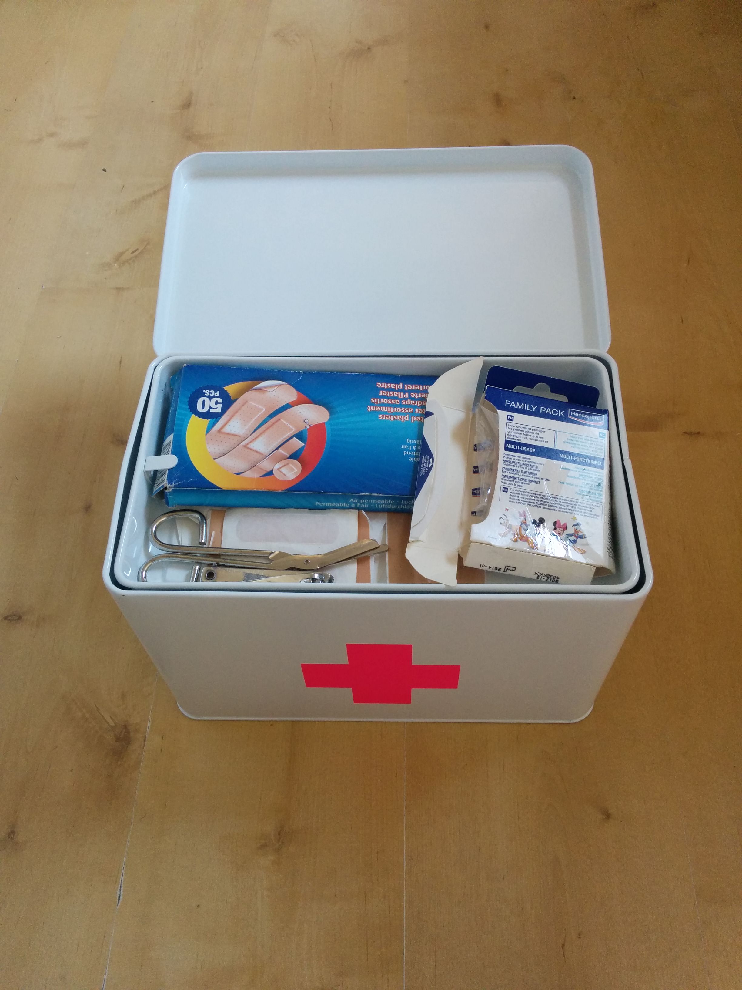 Terwijl de kinderen in het zwembadje speelde, deed ik een ‘Marie Kondootje’. Marie Kondo is een opruimgoeroe en ik heb haar boek onlangs gelezen. Ik zal er binnenkort nog wel wat uitgebreider over schrijven, het is best interessant namelijk. Bij de Hema had ik een mooie grote verbanddoos gekocht, dus dat was een mooie aanleiding om de drie verbanddozen in ons huis eens goed uit te zoeken. Opgeruimd staat netjes!