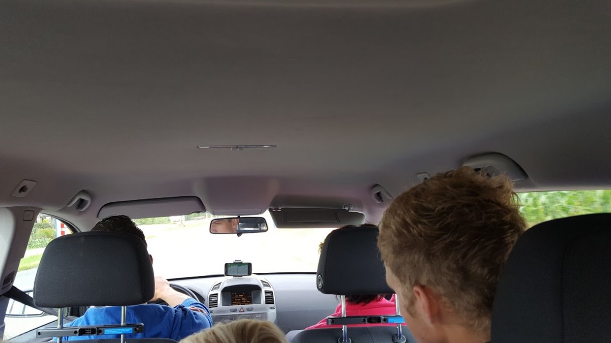 Daarna stapt het hele gezelschap in de auto, op naar Maastricht. Ik mag hélemaal achterin, jippie!