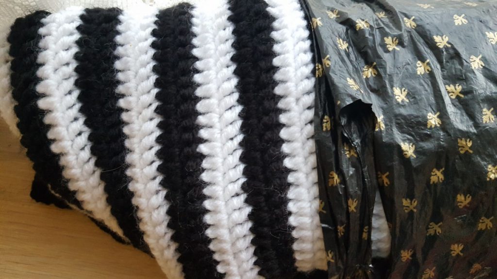 Maar ook hier lukte niet alles. Zo ligt er nog, ergens diep weggestopt in de kast, een tasje met een halve deken die ik voor mijn neefje wilde haken. De stekencombinatie die ik koos was veel te compact, waardoor het dekentje zo stijf werd dat het bijna rechtop bleef staan. 🙂