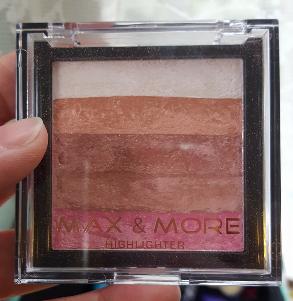 - Deze highlighter die ik kocht bij de Action. Je moet het subtiel aanbrengen (anders lijk je nogal sneleen clown), maar de kleur is erg mooi.