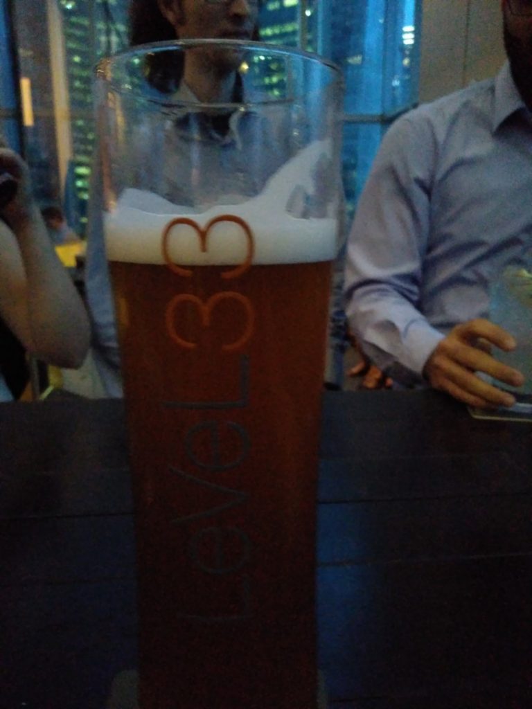 Een paar Duitse medestudenten hebben hun laatste werkdag, dus na het werk tuigen we met een groepje naar een bar op de 33e verdieping van een kantoorgebouw voor een drankje.