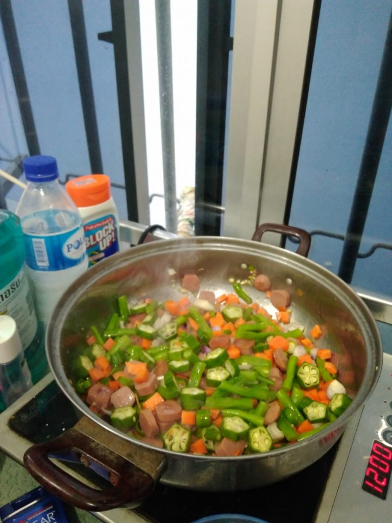 En ook kook ik even, al is het wel behelpen met maar 1 pitje en maar 1 pan. Maar nood maakt vindingrijk.