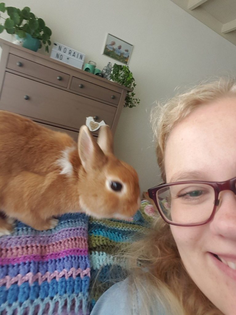 Ook haakte ik nog wat vierkantjes aan elkaar die ik in de vakantie heb gehaakt. Wilde er eerst een dekentje voor ‘Bert’ van maken, maar ik heb niet genoeg garen voor een fatsoenlijk formaat deken, dus ik weet het nog niet wat het gaat worden.