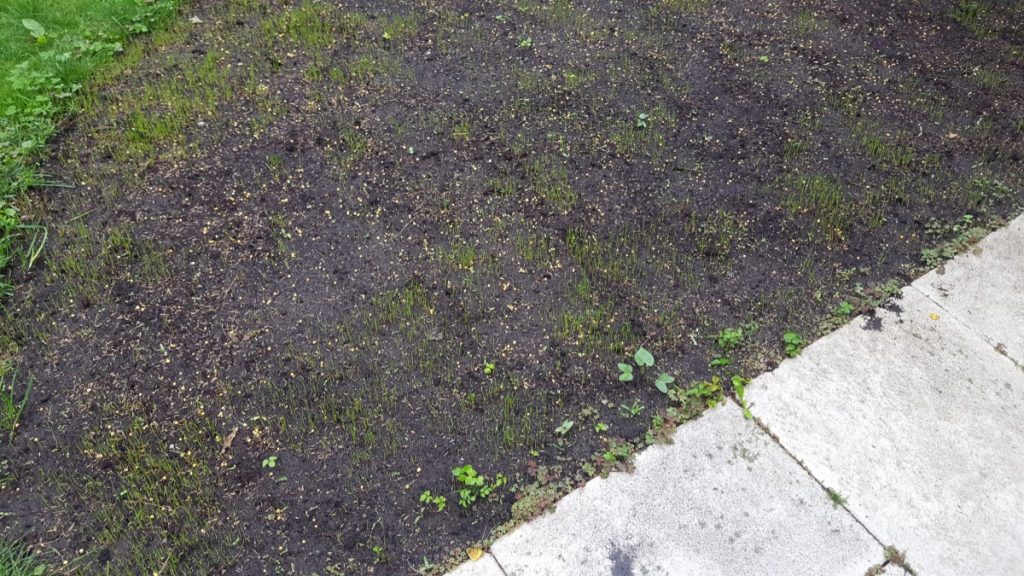 Nog meer groen leven: ik app man deze foto van zijn stukje nieuw grasveld. Er groeit iets!