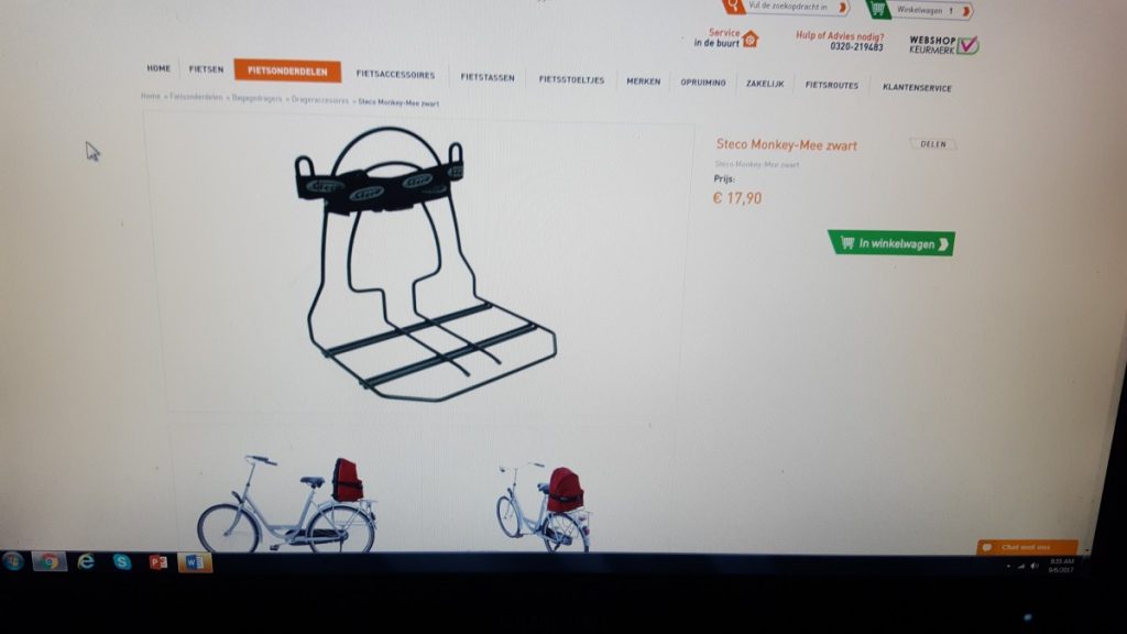 Oudste is deze week begonnen op het voorgezet onderwijs en dus bestel ik nog snel even een rekje voor achterop zijn fiets.