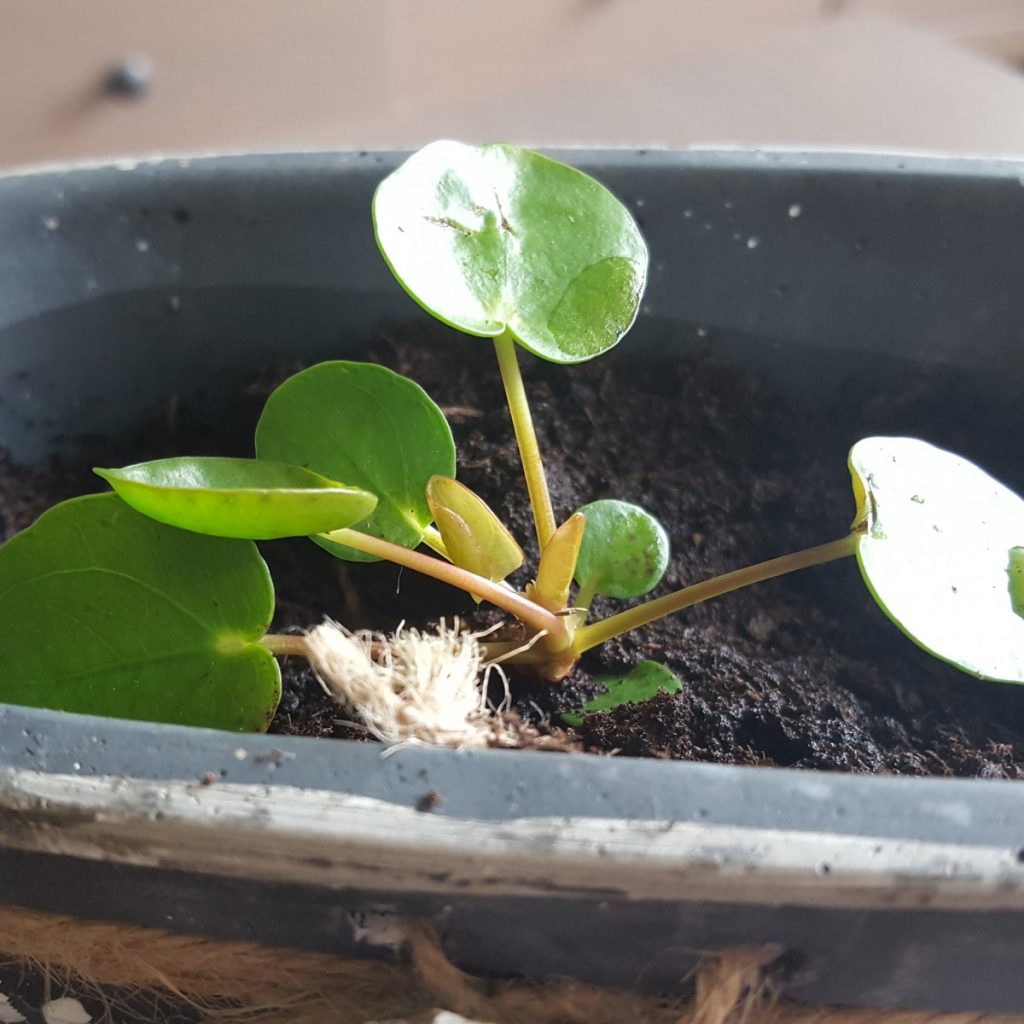 Er is weer een nieuwe telg van mijn pannenkoekenplant, dus die kreeg een eigen bloempotje. Welkom in de familie!