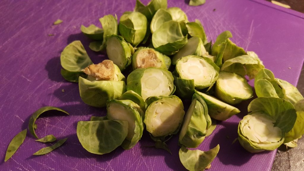 Ook stonden er voor het eerst dit najaar weer spruitjes op het menu. Jammer dat het altijd zoveel werk is om ze klaar te maken..