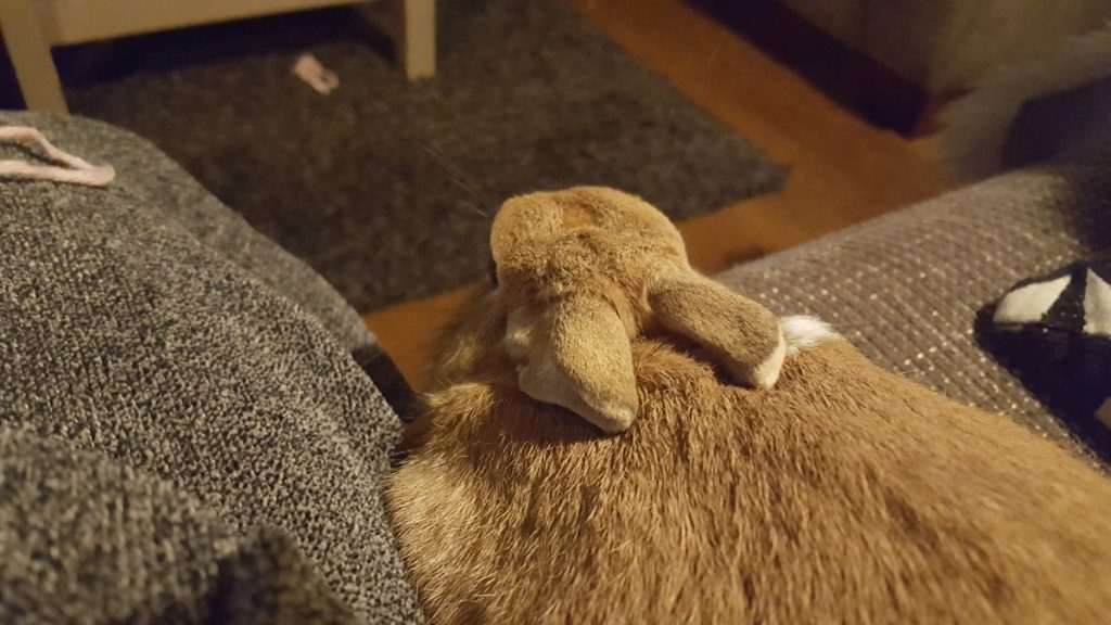 Dit is momenteel zijn favoriete plekje. Inderdaad, lekker warm en zacht tussen mijn wolletjes..