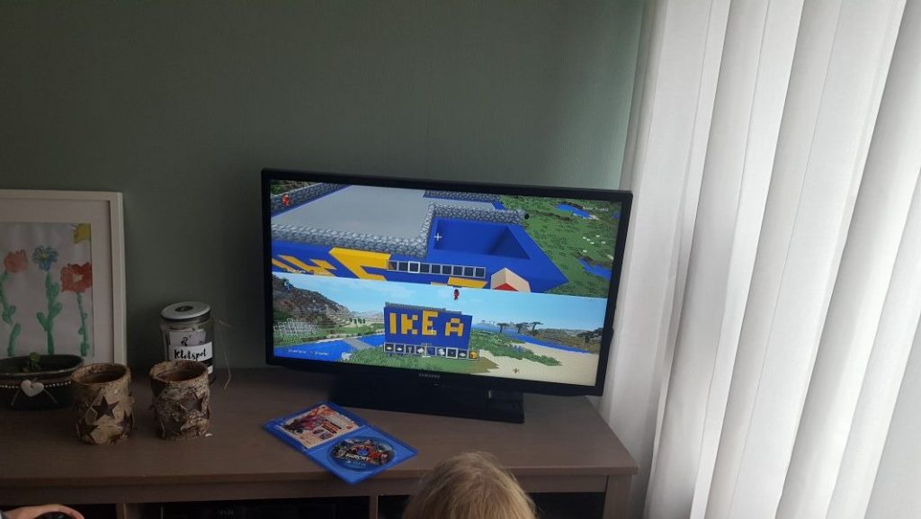 De kinderen vermaakten zich ondertussen met Minecraft, waar ze een Ikea bouwden.