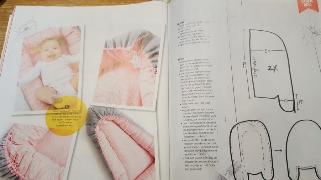 Terwijl zij druk aan het werk waren, ging ik naar Dini Kleine om stoffen te kopen voor dit babynestje dat ik wil gaan naaien. Ik ben heel benieuwd of me dit gaat lukken!