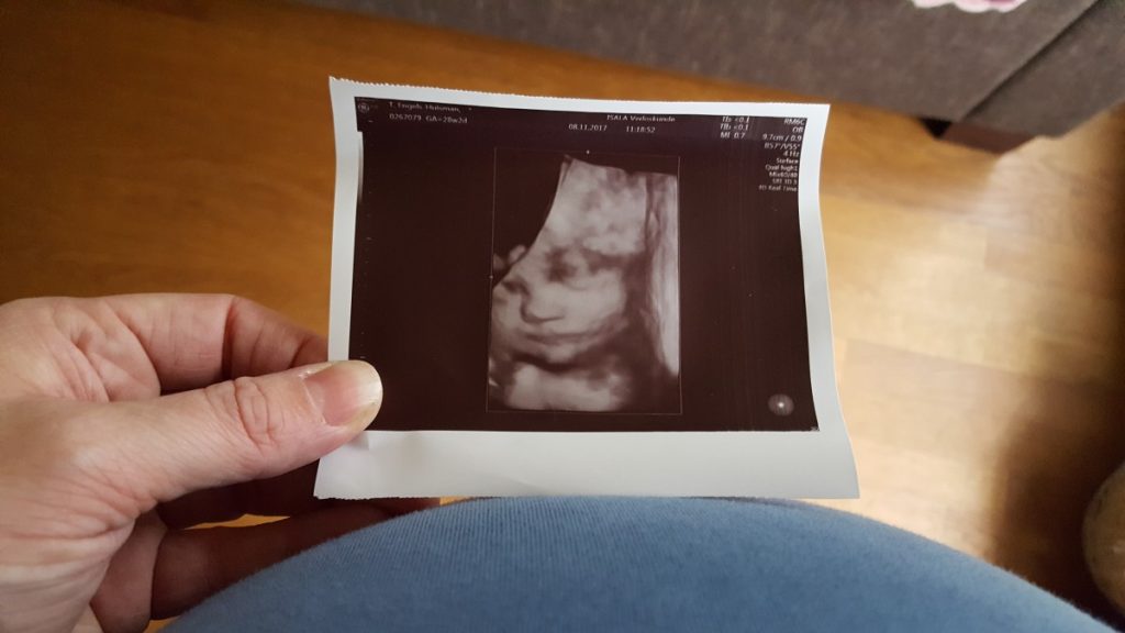 Het voordeel van het onder controle zijn in het ziekenhuis: deze prachtige 3d-echo van ons kleintje. Hij / zij heeft nu al zo’n bekend gezichtje!