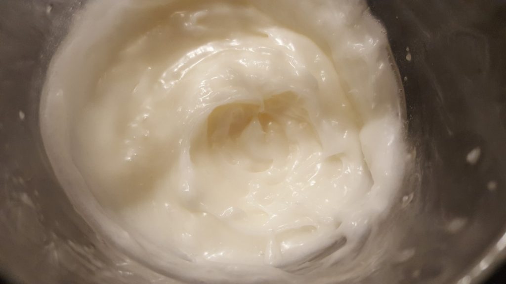 Mijn oogmakeup-reiniger was bijna op dus maakte ik nieuwe. Heel simpel: kokosolie iets zacht laten worden in de magnetron en daarna even opkloppen met de mixer.