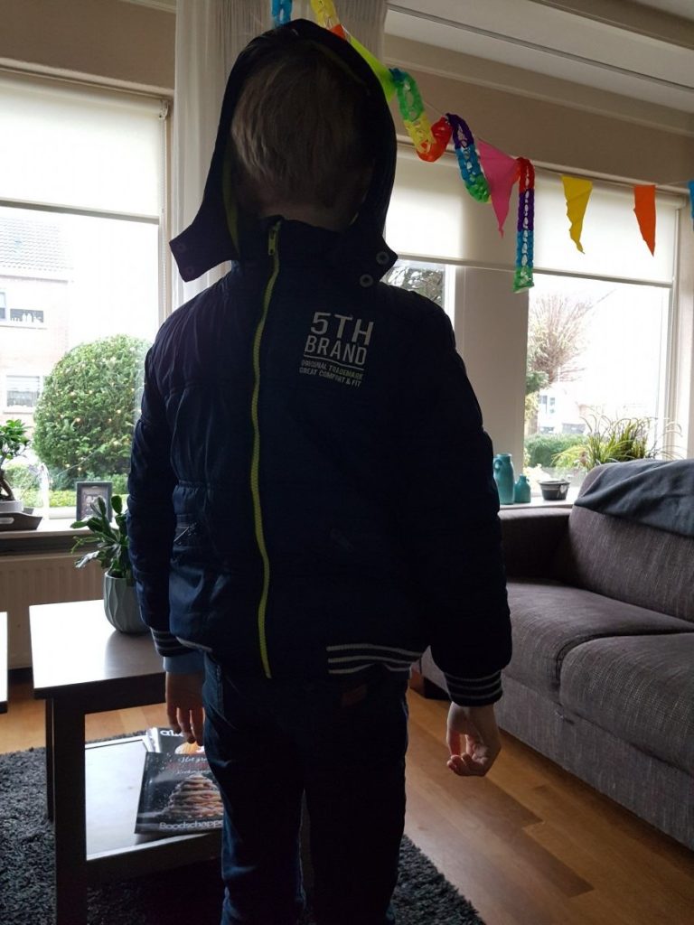 Donderdag kregen we een nieuwe cv-ketel. Dat betekende een paar uur een koud huis en dus hield jongste zijn jas maar aan. En als je dan 7 bent is dit enorm grappig. Hij heeft serieus de halve middag zo rondgelopen…
