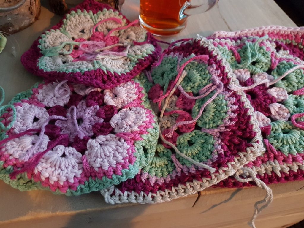 Vier kinderen naar bed brengen is best een avondvullend programma. Maar als ze dan eindelijk allemaal liggen… Tijd voor thee en haken. En ja, ik heb een hekel aan draadjes afhechten, dus dat stel ik altijd uit.