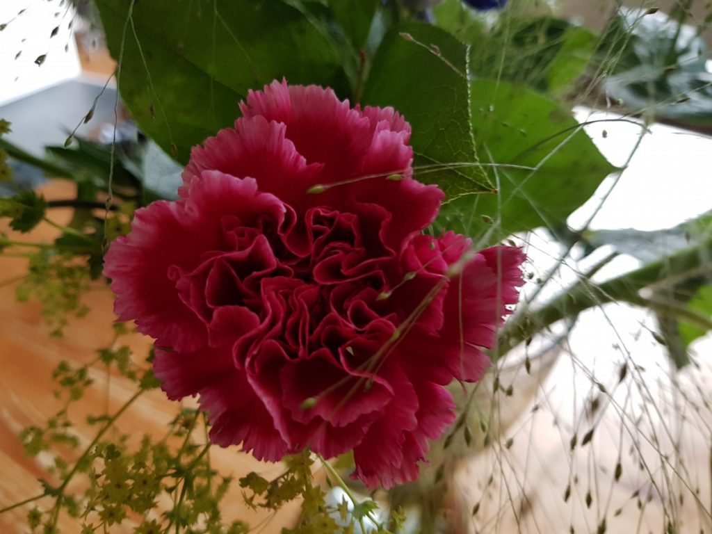 Schoonmams komt even een bosje bloemen brengen voor ons 15 jarige huwelijk. Mooi he?