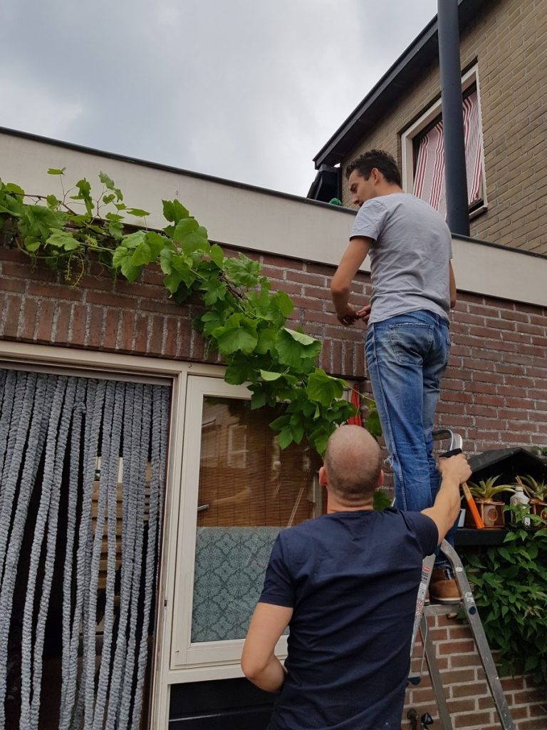 Deze plant is ondertussen wel heel fanatiek en ook wat onhandig omhoog aan het groeien.