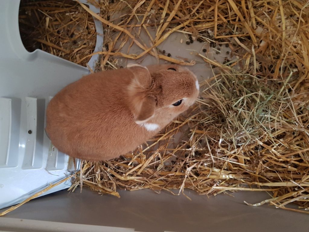 Tijd om Lucky’s hok schoon te maken. Overdag zit hij nooit in zijn hok, behalve natuurlijk als ik het schoon wil maken. Dan gaat hij er opeens uitgebreid in liggen.