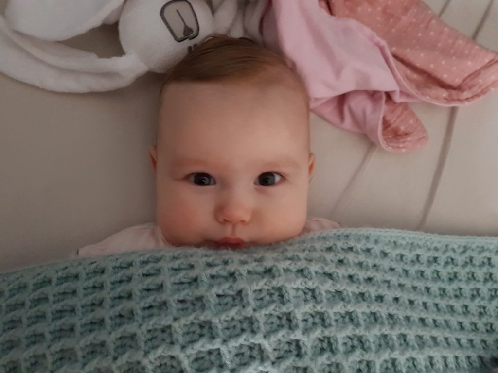 Tijd om te slapen, onder het fijne dekentje dat oma voor haar haakte.