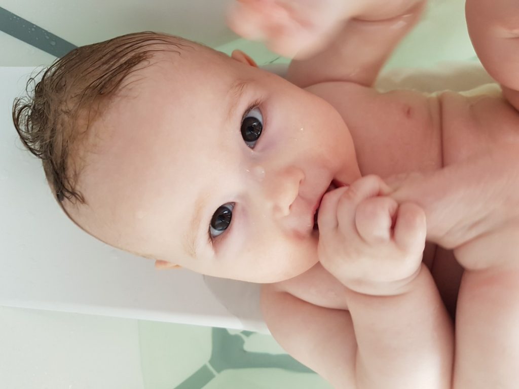In bad gaan vindt ze heerlijk. Lekker op je tenen sabbelen terwijl je in het warme water dobbert, wat wil je nog meer? (Oh, die ogen…. ♥)