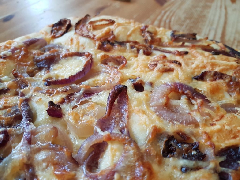 Ik bakte voor het eerst in een jaar ofzo weer eens brood. Kaas-uienbrood, simpel maar lekker.