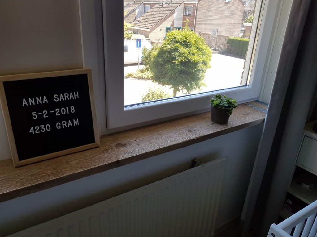 Er moesten nog wel wat nieuwe vensterbanken geplaatst worden. Ik houd niet van standaard wit, dus togen we vrijdagavond naar de Gamma om daar tussen de stapel gebruikt steigerhout te zoeken naar de mooiste planken. Gelukkig was grote Dochter mee om haar zusje te vermaken.