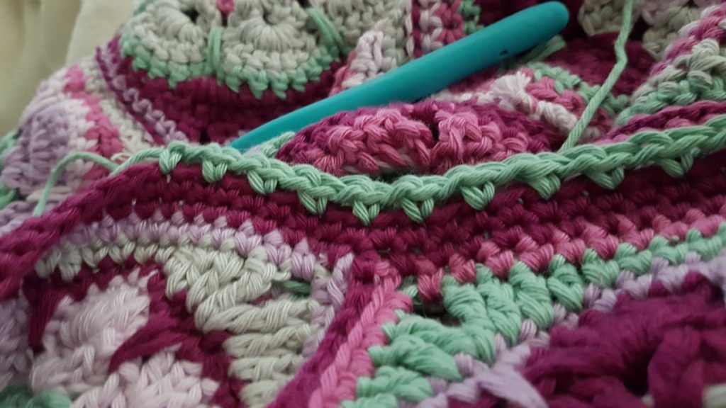 Qua creativiteit was het echt een drama deze week. Heb alleen één toer gehaakt aan de rand van deze deken.