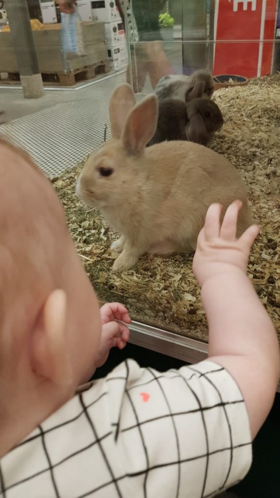 Vanmorgen waren we even bij de Welkoop. Uiteraard wilde ze dit konijn pakken, maar gelukkig voor het beestje zat er glas tussen.