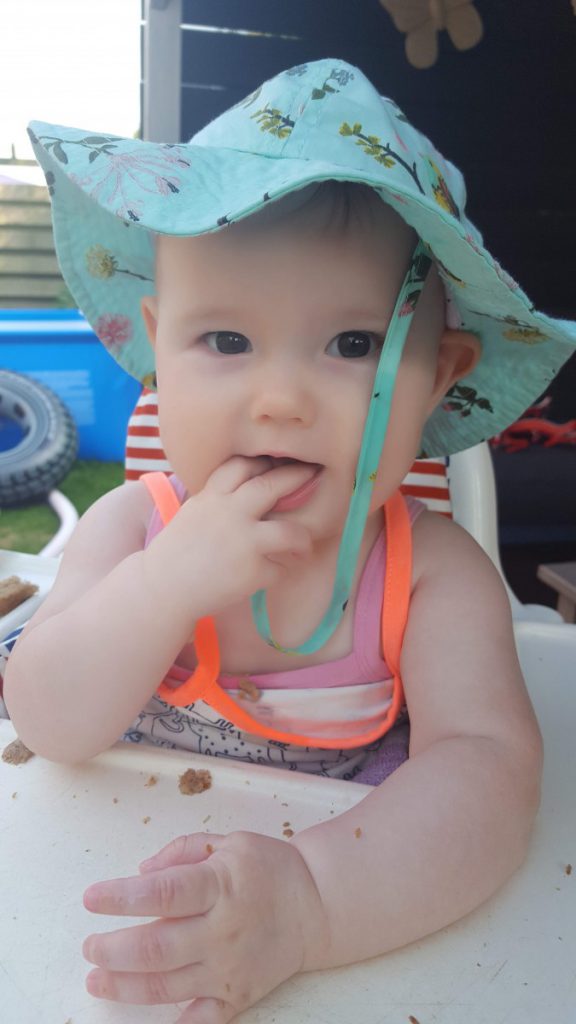 Ze heeft nu nog de leeftijd dat ze nog niet snapt dat je dat hoedje ook van je hoofd kan trekken..