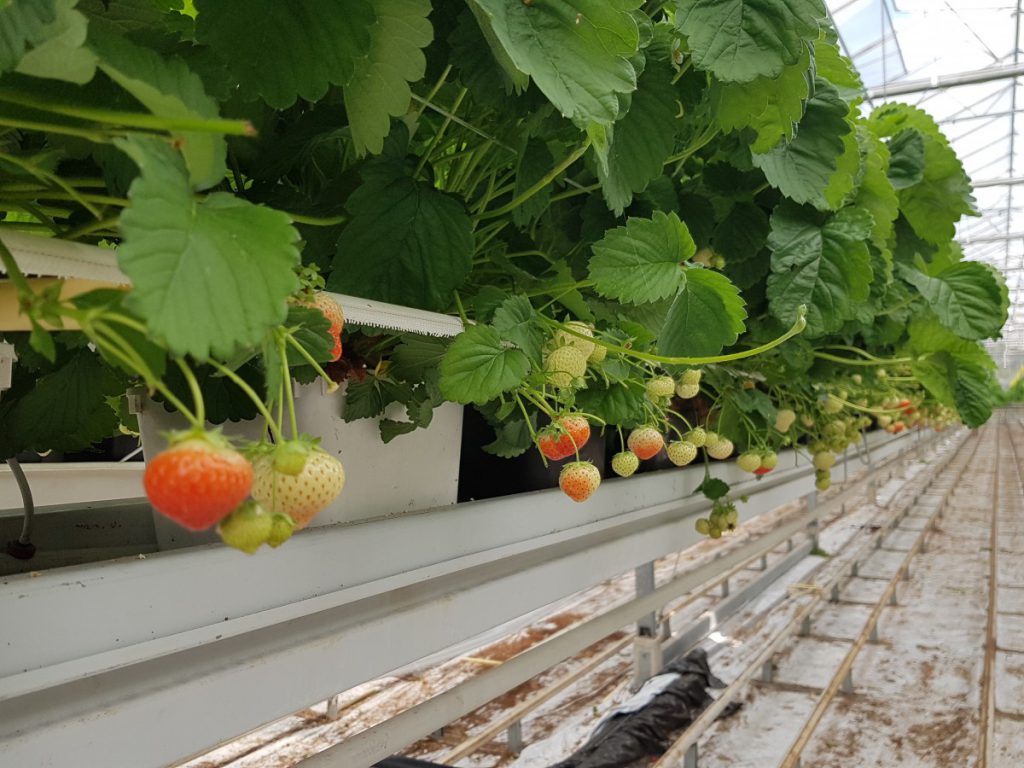 Nee, dit is niet onze tuin (helaas!), maar de kas van Kalter aardbeien.