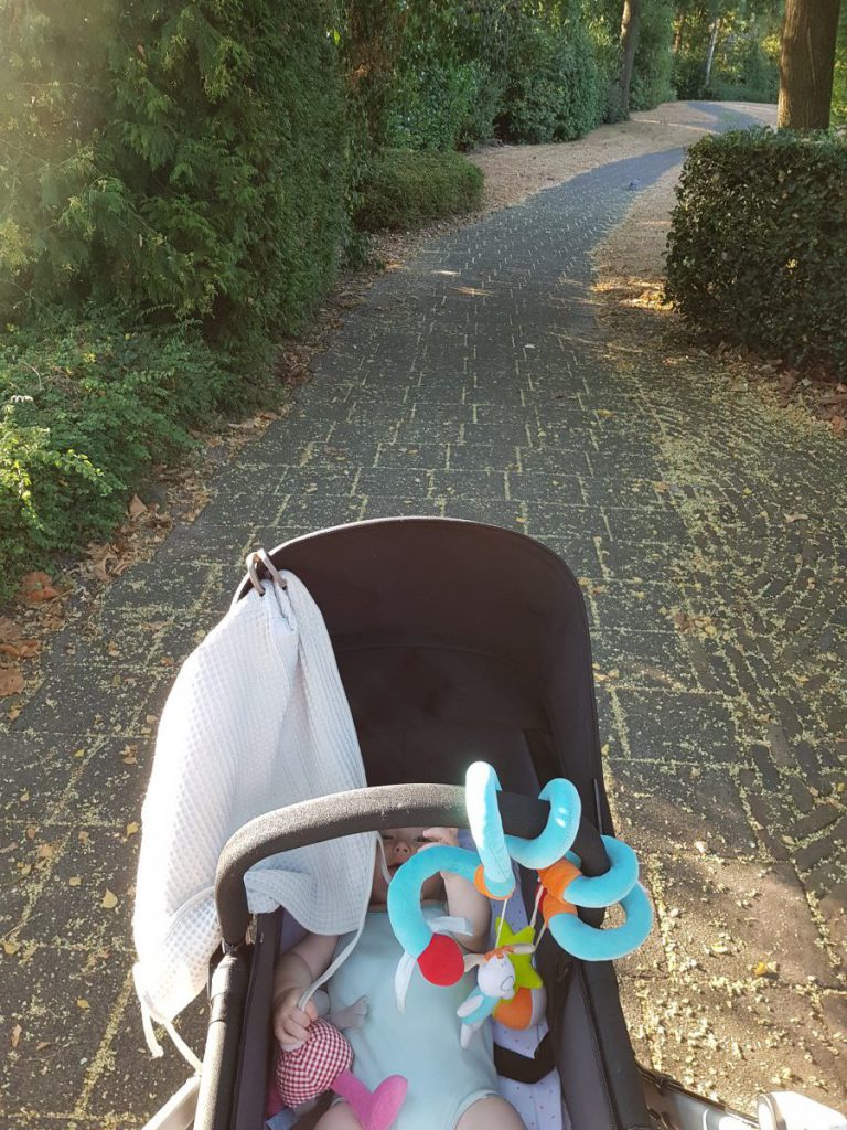 Half 8 ’s ochtends, 25 graden en wandelen met je baby alleen in een romper terwijl het zweet alweer over je rug loopt.