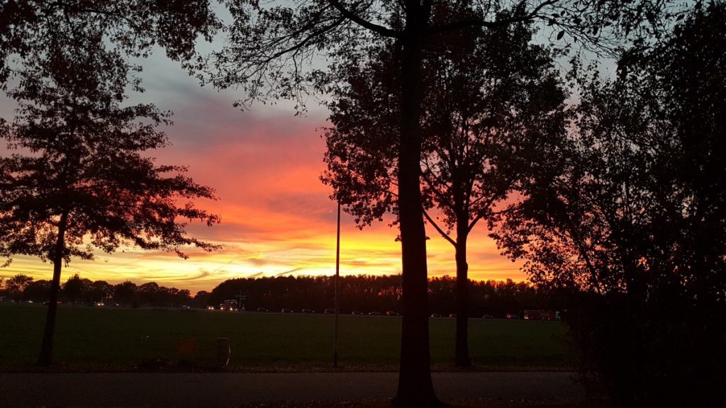 - De herfstzon die zo mooi door de gekleurde blaadjes van de bomen scheen gisteren.